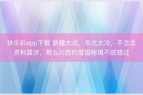 新疆太远,东北太冷 不念念资料跋涉 那么川西的雪国秘境就一定不要错过! 川西,一下雪就酿成了南边雪国,大雪纷繁,好意思景相迎,银装素裹,分外妖娆,冬天的川西,同样好意思得无与伦比! 不知不觉的白雪堆叠...